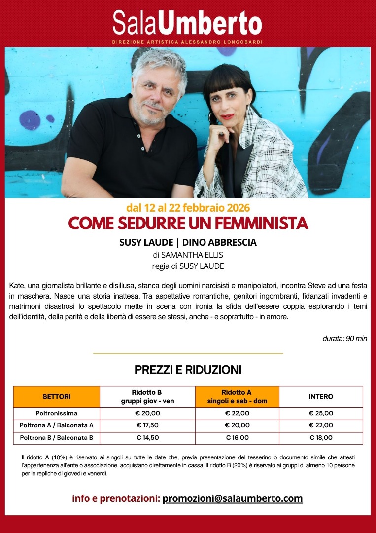 - COME SEDURRE UN FEMMINISTA una nuova commedia sentimentale con Susy Laude e Dino Abbrescia - dal 12 al 22 febbraio - |Scarica la promo|