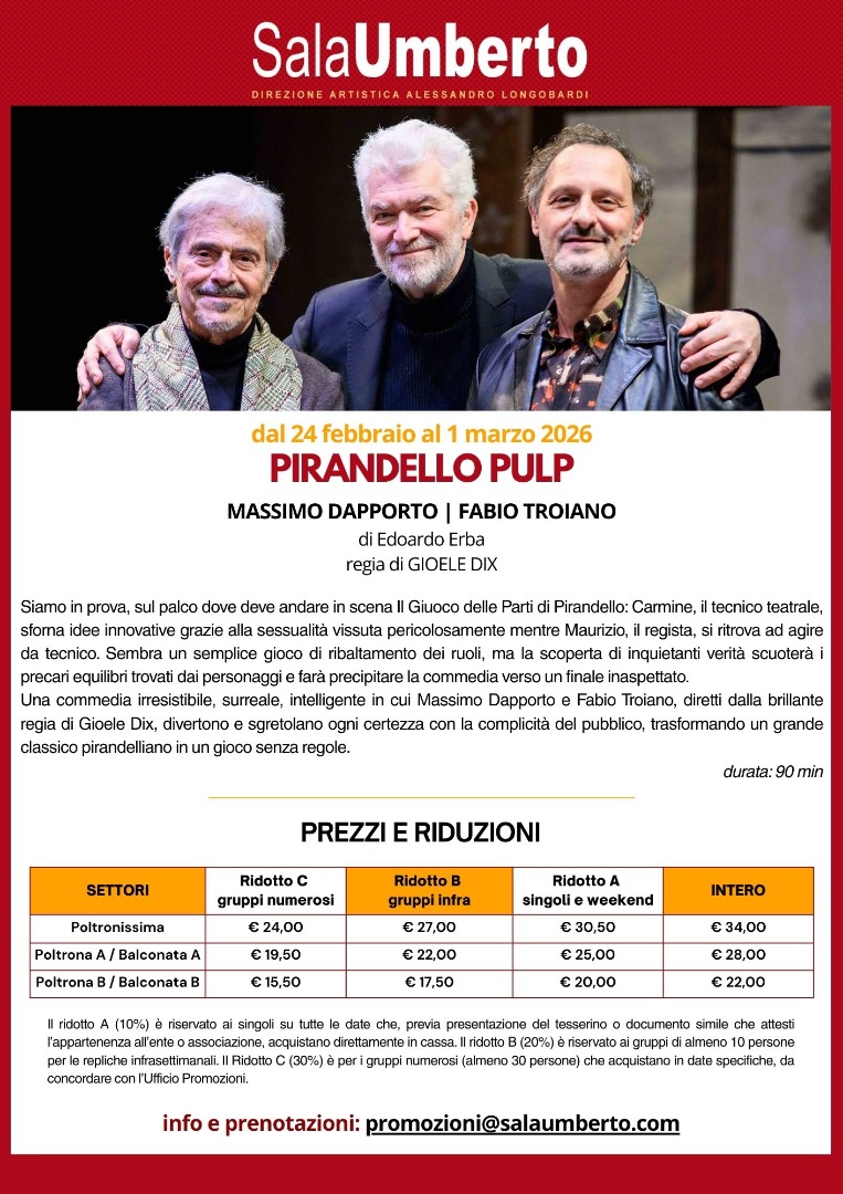 - PIRANDELLO PULP con Massimo Dapporto e Fabio Troiano - dal 24 febbraio al 1° marzo - |Scarica la promo|