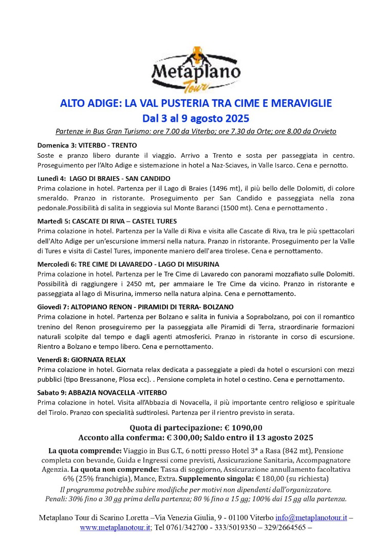 - Alto Adige: Val Pusteria - dal 3 al 9 agosto - |SCARICA LA DESCRIZIONE|